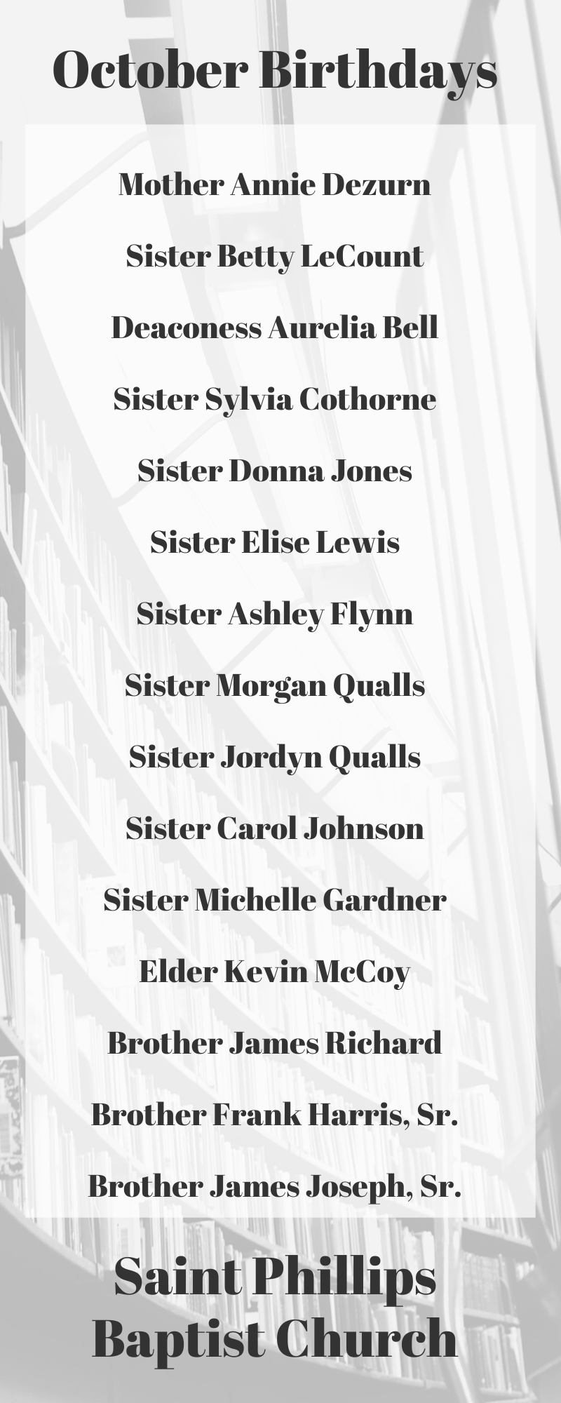 We have many exciting events going on at Saint Phillips Baptist Church. Weekday services and Bible Study start @ 6:30 PM.